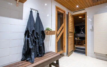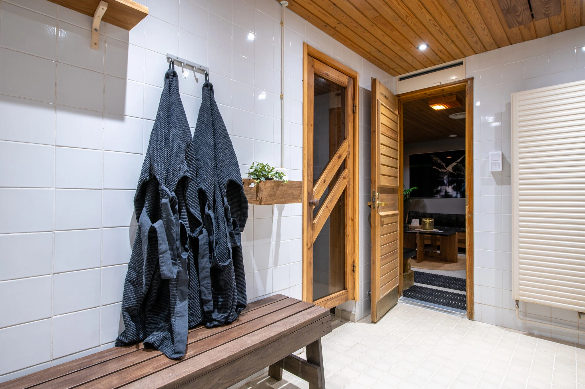 Pienellä keittonurkkauksella varustettu viihtyisä pukeutumis- oleskeluhuone, tarjoaa hyvät tilat illanviettoon 6-15 hengelle omassa rauhassa. Saunaan voi myös tuoda omia juomia ja napostelueväitä.